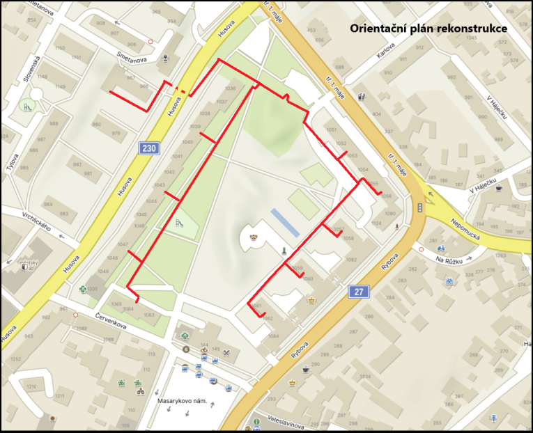Rekonstrukce probíhá po etapách a zahrnuje výměnu starého ocelového potrubí v topném kanále za nové předizolované rozvody z oceli a plastu. Práce se týkají hlavních tras vedených z kotelny Husova, přes páteřní rozvod až po jednotlivé větve – ulice Husova, Rybova, Tř. 1. máje a Červenkova. Práce jsou organizovány tak, aby doba případného omezení dodávky tepelné energie byla co nejkratší.